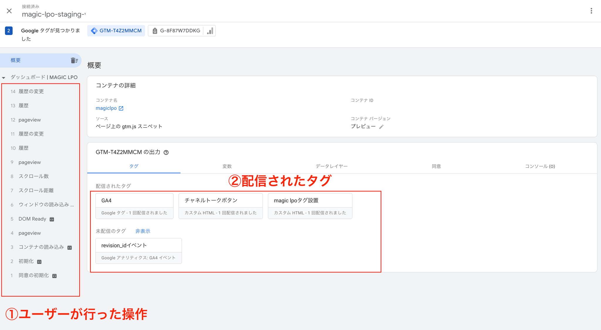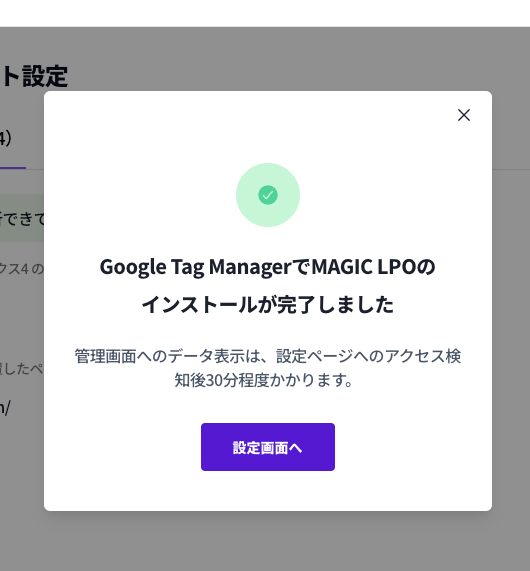 - 初期設定時に、プロジェクト作成/GA4連携後自動で開き、タグ設定を行います。