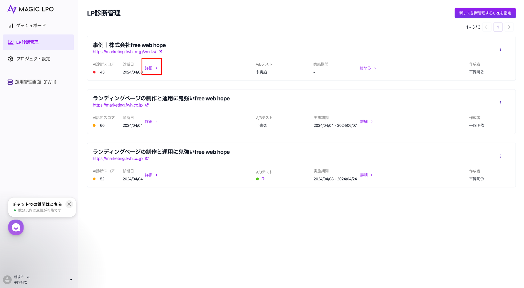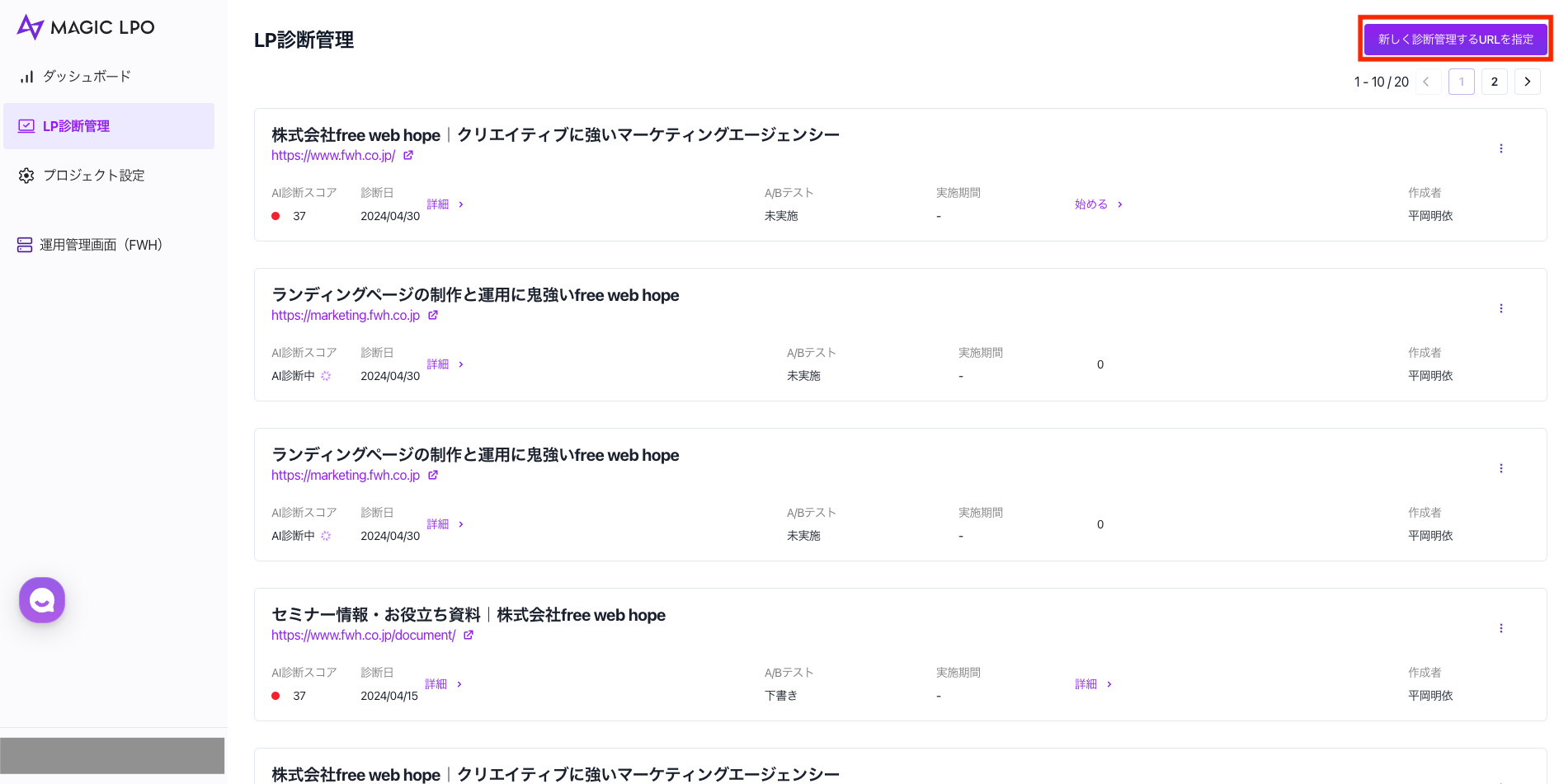 | A/Bテストを実施しているサイト | https://marketing.fwh.co.jp/ |