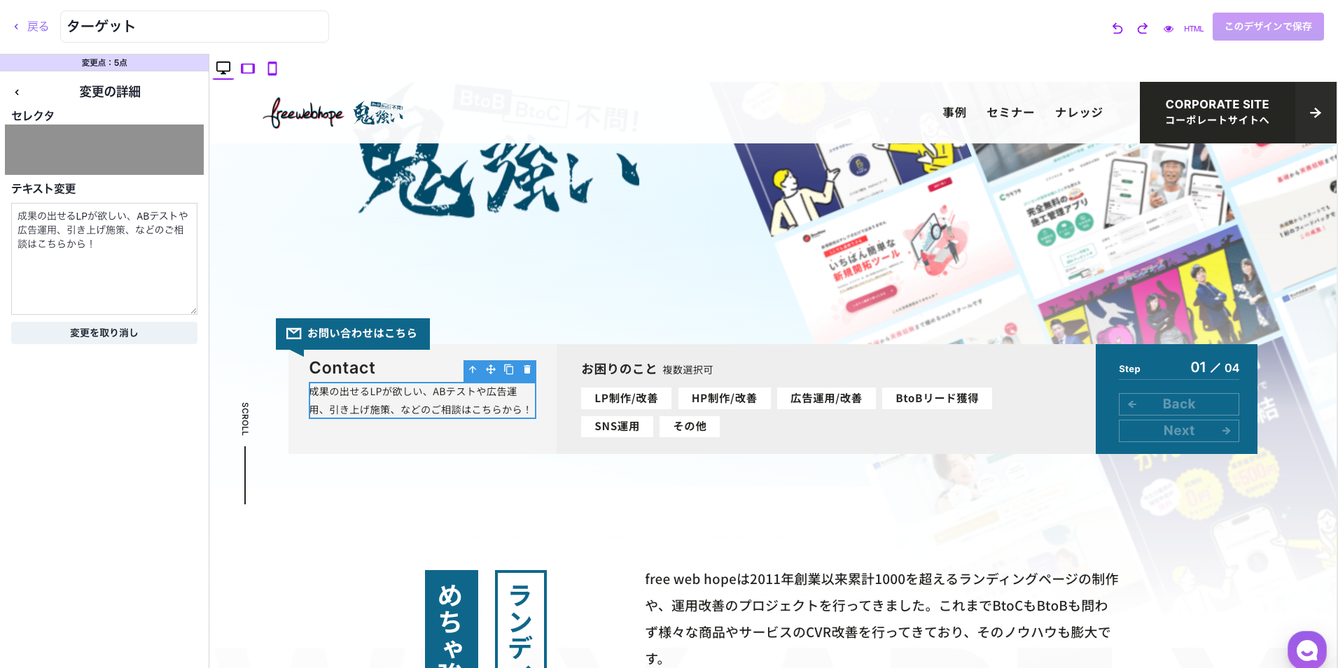 A/Bテストでは、検証するWebサイトのデザインを編集することができます。(オリジナルのデータは編集できません。)