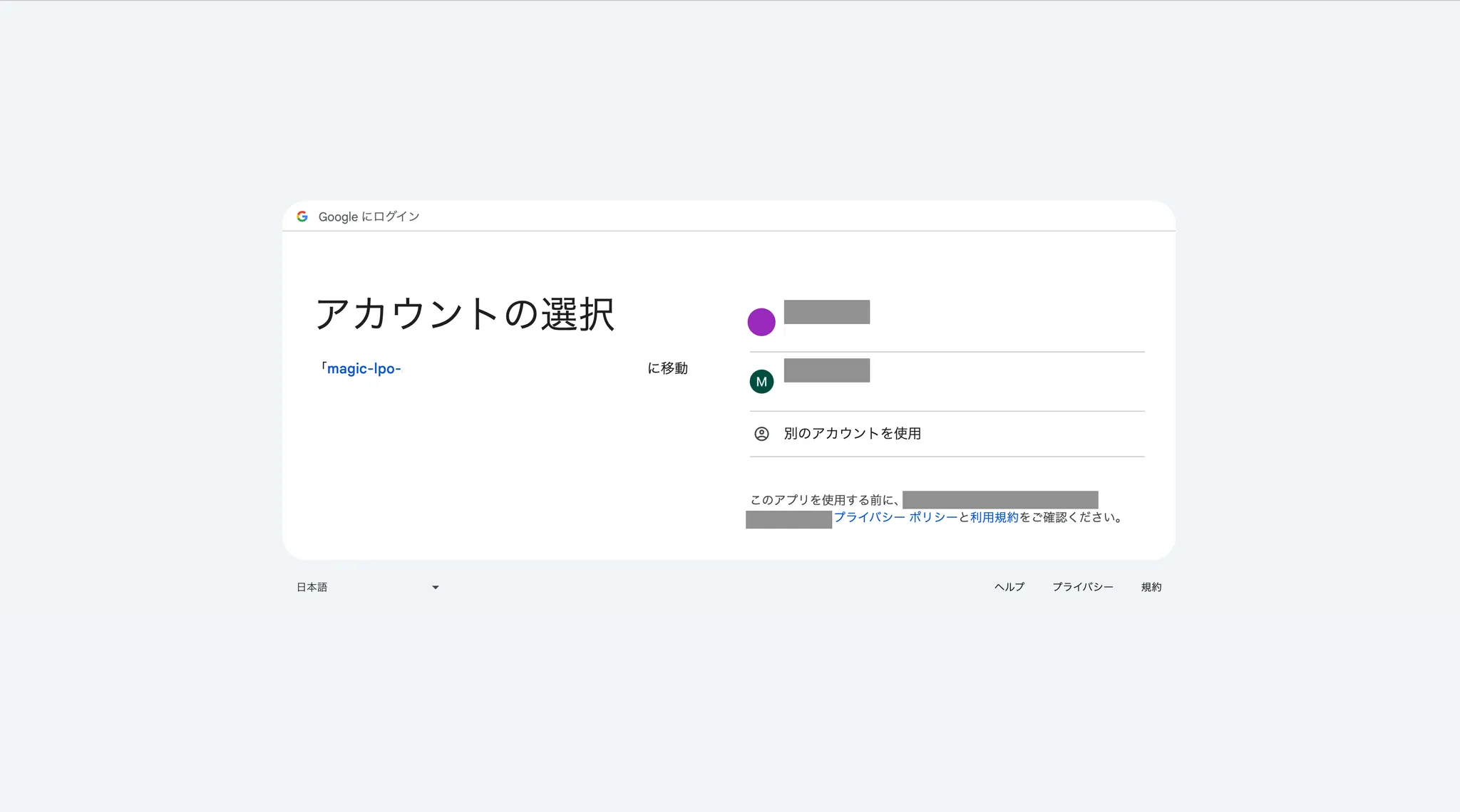 - 以下のようなGoogleアカウントを選択する画面に遷移します。 登録したドメインのGA4に編集者権限以上のあるGoogleアカウントを選択してください。 その後、許可を押してください。