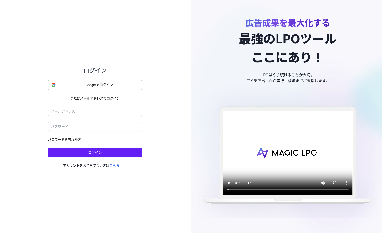 - ご自分のアカウントにパスワード無しでログインができます。ログインがうまくできない場合は、Magic LPO サポートまでお問い合わせください。