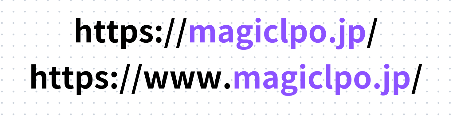 サイトのドメインとは、インターネット上でサイトがどこにあるかを示す住所の様な役割をしています。ドメインは通常、”https://”や”https://www.”の後から”/”まで続いているものを指します。例えば、https://magiclpo.jp/statisticsを分析したいときは”magiclpo.jp”がドメインに該当します。