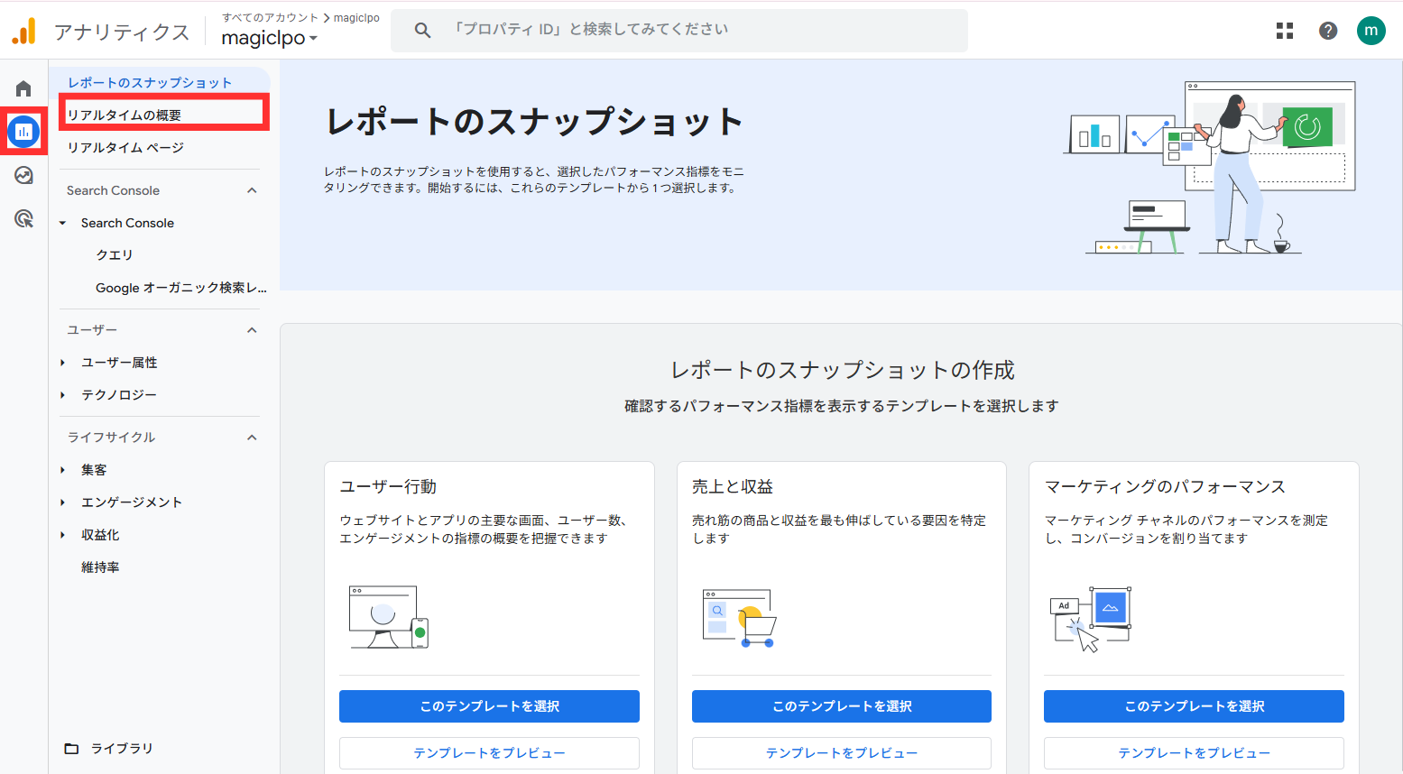 - 「プロパティ名」・「レポートのタイムゾーン」・「通貨」を記入してください。